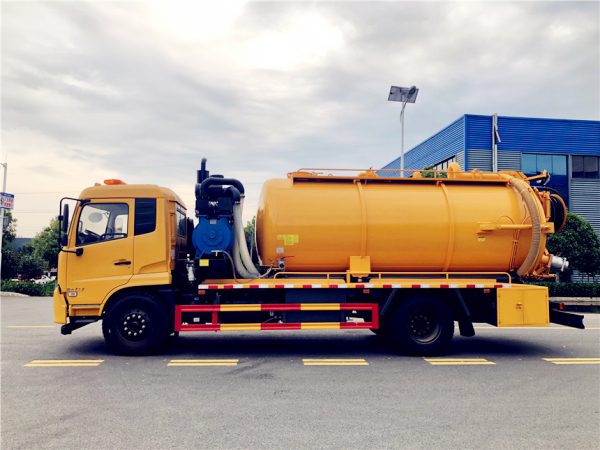 吸污部分:9方污罐,罐体8mmQ235优质碳钢,配潍柴375(420)副发动机带淄博SK-30水循环泵,还可以选配罗茨泵。10米吸污管一根,进气管加过滤网,防溢阀加高,后盖卡扣锁紧,前视污亮管,后尾部加装3个力拓牌**mm的球阀吸污口,600mm排污口液压开启,罐体带举升功能。